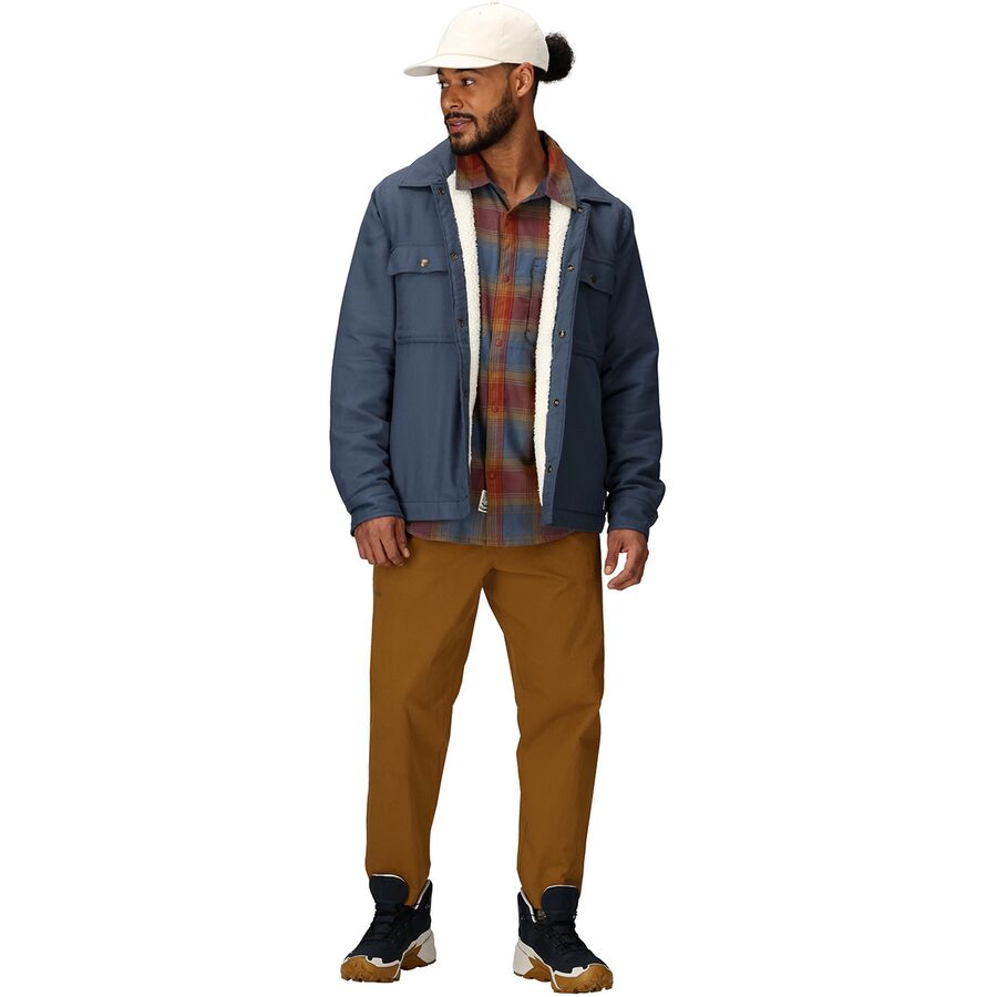 Рубашка-рубашка Marmot Ridgefield Sherpa Flannel - это воплощение непринужденного тепла и стиля, сочетающее в себе вневременной вид фланели с уютным комфортом подкладки из искусственного меха. Будь то уборка подъездной дорожки прохладным утром, отдых у костра в лагере или прогулка в бар у склона после дня катания, эта рубашка-куртка идеально сочетается с любой одеждой для прохладной погоды. Ее внешний слой из мягкой фланели, изготовленный из смеси хлопка и переработанного полиэстера, обеспечивает ощущение мягкости и комфорта, которое со временем только улучшается. Внутри подкладка из переработанного полиэстера шерпа окутывает теплом, создавая ощущение, будто вы находитесь рядом с потрескивающей дровяной печью. Прочные плоские швы выдерживают сезон за сезоном, а двойные нагрудные карманы и карманы для согревания рук добавляют практичности, позволяя быстро надеть и отправиться куда угодно.