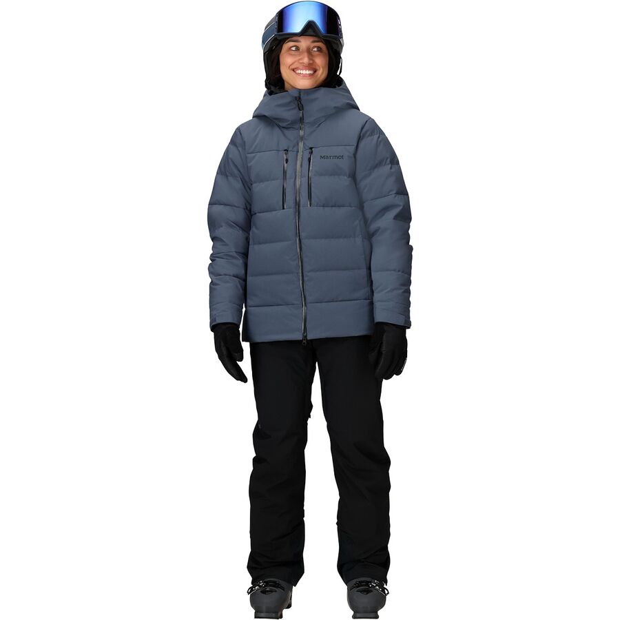 Мы надеваем пуховую куртку Slingshot, когда холодные дни в горах требуют надежного тепла и водонепроницаемой защиты. Переработанная ткань NanoPro от Marmot блокирует снег и слякоть, оставаясь при этом достаточно дышащей для активного катания, обеспечивая комфорт от первого подъемника до поворотов в конце дня. Внутри объемный пуховый утеплитель плотностью 700 окутывает нас исключительным теплом, благодаря чему поездки на ледяных подъемниках и походы в штормовые дни кажутся невероятно уютными.