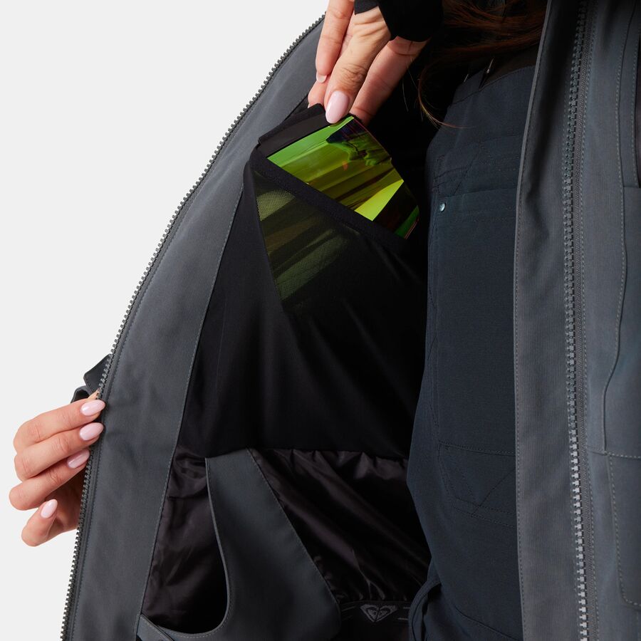От спусков по глубокому зимнему снегу до бодрящих весенних заездов, парка Roxy Incline обеспечивает защиту от непогоды и комфорт на весь сезон. Ее водонепроницаемая и дышащая оболочка из полиэстера Bedford плотностью 15 000 мм/15 000 г, изготовленная из 50% переработанных волокон, защищает нас от сильного снега и ветра, позволяя при этом отводить тепло тела. Полностью проклеенные швы предотвращают проникновение влаги, а утеплитель из полиэстера сохраняет тепло, не стесняя движений. Функциональные особенности позволяют кататься дольше: сетчатые вентиляционные отверстия отводят избыточное тепло, а фиксированная снегозащитная юбка, лайкровые манжеты на запястьях и система крепления куртки к штанам защищают от снега. Капюшон, совместимый со шлемом, и молния нагрудного кармана YKK Aquaguard Vislon обеспечивают дополнительную защиту от непогоды. Множество карманов, включая карман для ски-пасса, отделение для медиаустройств и отделение для очков, надежно удерживают все вещи на месте, а воротник Hydrosmart смягчает кожу даже в самых суровых условиях.
