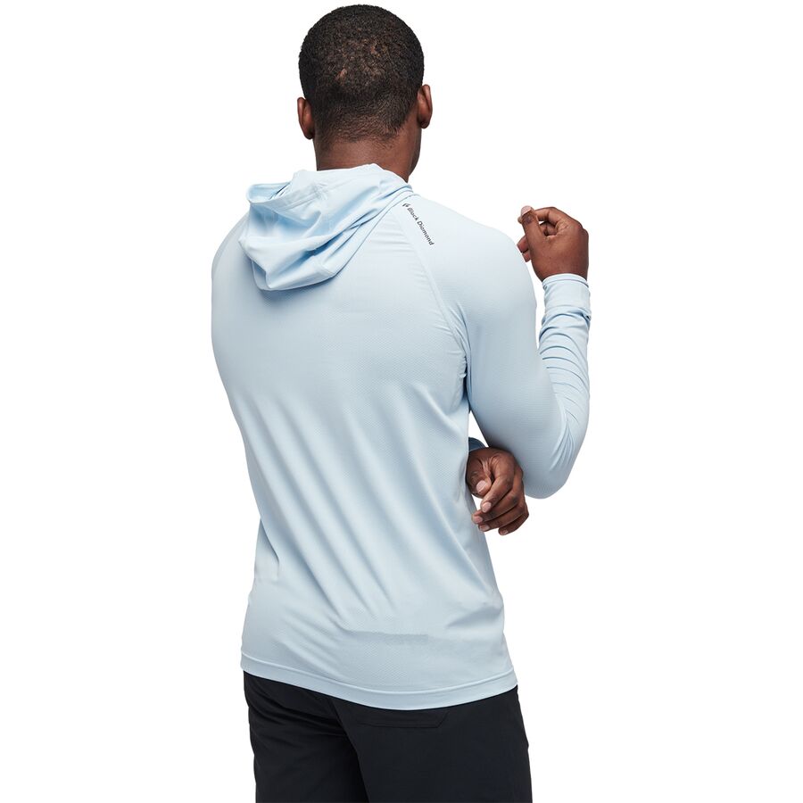 Защититесь от солнца с помощью мужской рубашки с капюшоном Black Diamond Alpenglow во время долгих дней страховки под палящим солнцем пустыни. Легкая ткань защищает кожу от вредных ультрафиолетовых лучей, не вызывая перегрева, и отводит пот, помогая оставаться сухим и в прохладе. Усиленные вставки под мышками и капюшон, который можно надевать под шлем, позволяют носить рубашку во время восхождения, не чувствуя себя скованным. Black Diamond также добавила обработку Polygiene против запаха, чтобы в машине не было неприятного запаха во время долгой поездки из пустыни.