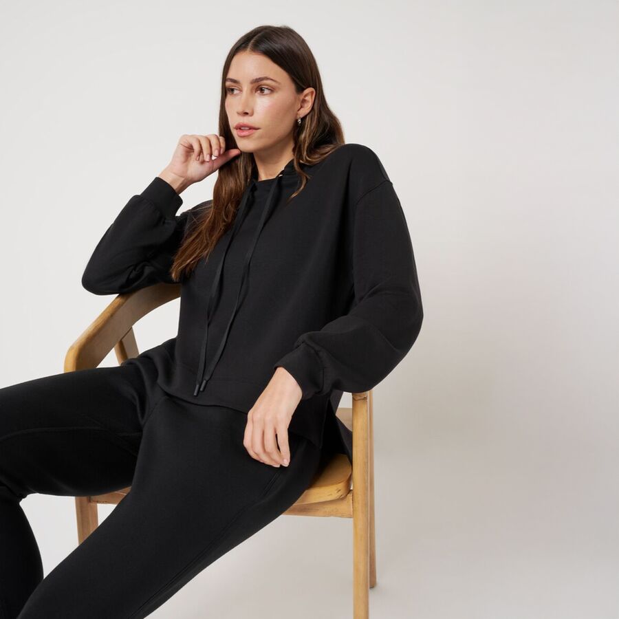 "Эта толстовка невероятно мягкая. Ткань Skyloft приятна на ощупь, но при этом достаточно уютная для ношения в течение всего дня. Мне нравится свободный крой - она не слишком большая, но при этом сохраняет непринужденный, расслабленный вид. Ступенчатый низ добавляет современный штрих, благодаря чему ее легко сочетать с леггинсами, спортивными штанами или джинсами. Независимо от того, надеваю ли я ее для утреннего похода за кофе или просто отдыхаю дома, эта толстовка - мой абсолютный фаворит."