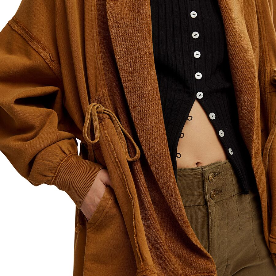 Изготовленный из мягкой хлопковой махровой ткани, он обладает всеми элементами, которые мы любим: приспущенные плечи, ребристые манжеты и регулируемый шнурок на талии, позволяющий идеально подогнать размер. Наденьте его поверх леггинсов после йоги или поверх майки для похода по магазинам - это удобная вещь, которая добавит стиля любому повседневному образу.