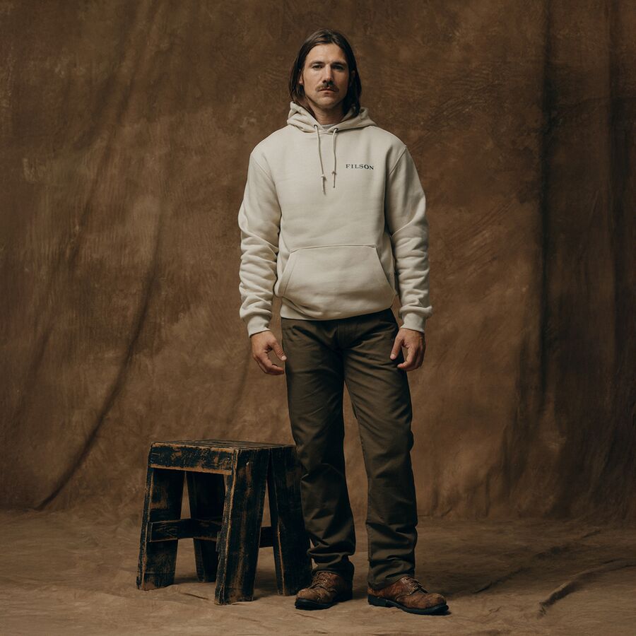 Мы чувствуем особый комфорт, как только надеваем худи Prospector Graphic. Filson создал эту незаменимую вещь из прочного хлопкового флиса, который сохраняет тепло, держит форму и устойчив к износу при регулярном использовании. Внутренняя сторона имеет объем для невероятной мягкости, а внешняя гладкая и не образует катышков - идеально подходит для ношения под верхней одеждой или отдельно.