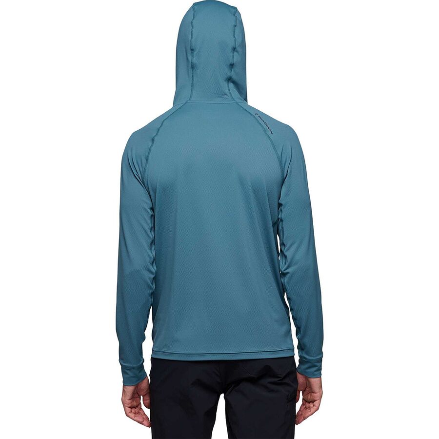 Защититесь от солнца с помощью мужской рубашки с капюшоном Black Diamond Alpenglow во время долгих дней страховки под палящим солнцем пустыни. Легкая ткань защищает кожу от вредных ультрафиолетовых лучей, не вызывая перегрева, и отводит пот, помогая оставаться сухим и в прохладе. Усиленные вставки под мышками и капюшон, который можно надевать под шлем, позволяют носить рубашку во время восхождения, не чувствуя себя скованным. Black Diamond также добавила обработку Polygiene против запаха, чтобы в машине не было неприятного запаха во время долгой поездки из пустыни.