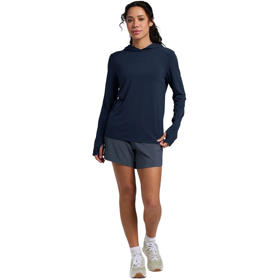 Когда мы выходим на озеро на байдарке, чтобы порыбачить на форель, мы надеваем толстовку Free Fly Shade II, чтобы оставаться в прохладе и быть защищенными от летнего солнца. Мягкая, приятная на ощупь смесь высококачественных волокон отводит влагу, быстро сохнет и предотвращает обгорание кожи под воздействием солнечных лучей, позволяя нам сосредоточиться на рыбалке.