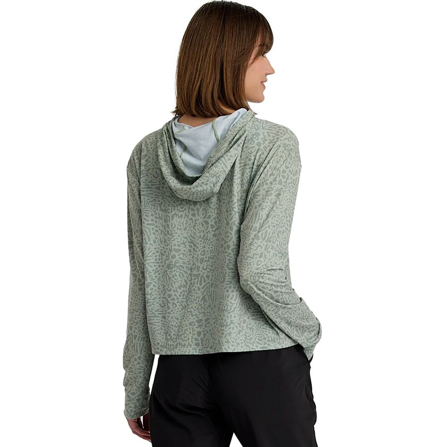 Приталенный капюшон с перекрестными лямками обеспечивает полную защиту шеи, когда трудно найти тень, а уникальная конструкция с отверстиями для больших пальцев обеспечивает защиту тыльной стороны ладоней. Благодаря защите от ультрафиолета UPF 30+ и дышащей, быстросохнущей конструкции, эта толстовка станет незаменимым элементом гардероба для рыбалки, походов, гребли или любых приключений под солнцем.
