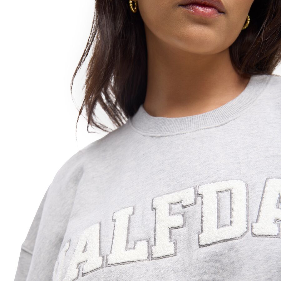 Выразительный логотип из синели добавляет текстуру и напоминает о классике, а ребристые манжеты и нижний край придают свободному силуэту непринужденный и стильный вид. Будь то отдых на даче, поездка после катания или просто наслаждение свободным днем, эта толстовка станет вашим любимым предметом гардероба на весь год.