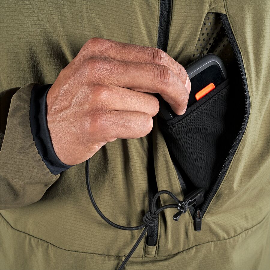 Каждая деталь усовершенствована для эффективности в альпинизме. Двусторонние вентиляционные молнии быстро отводят тепло. На крутых подъемах, а единственный нагрудный карман может использоваться как чехол для маячка с застежкой-липучкой для дополнительной безопасности. Низкопрофильные манжеты с петлями для больших пальцев, затяжка по низу и капюшон, совместимый с шапкой, обеспечивают удобную посадку без лишнего объема. Гибридная толстовка TourTech Hybrid Hoodie обеспечивает редкий баланс между теплом, свободой движений и вентиляцией, что делает ее единственным слоем одежды, который мы носим от начала маршрута до вершины.