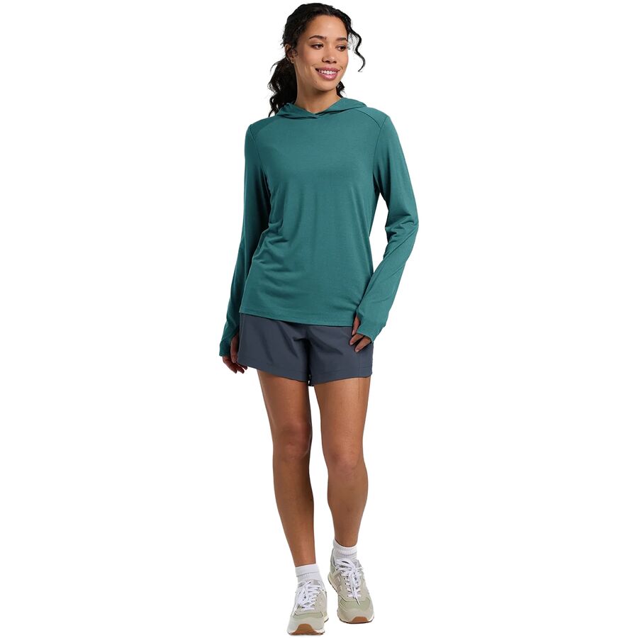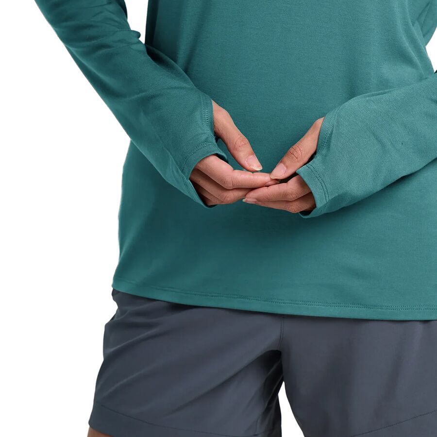 Когда мы выходим на озеро на байдарке, чтобы порыбачить на форель, мы надеваем толстовку Free Fly Shade II, чтобы оставаться в прохладе и быть защищенными от летнего солнца. Мягкая, приятная на ощупь смесь высококачественных волокон отводит влагу, быстро сохнет и предотвращает обгорание кожи под воздействием солнечных лучей, позволяя нам сосредоточиться на рыбалке.