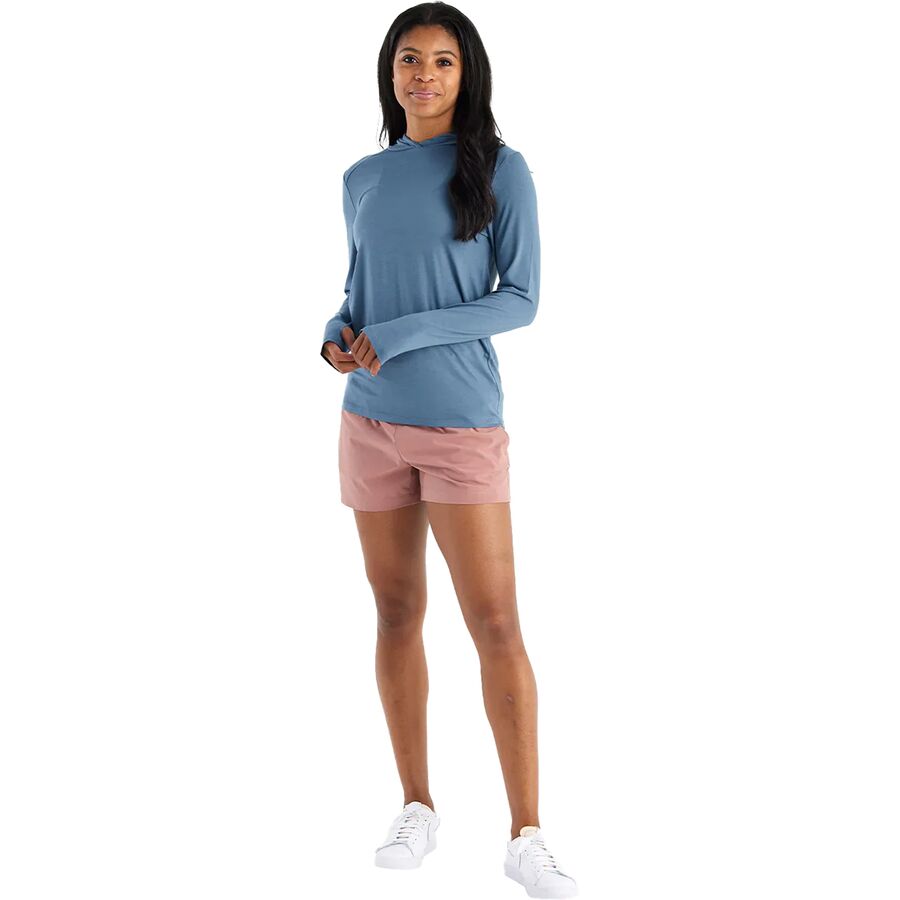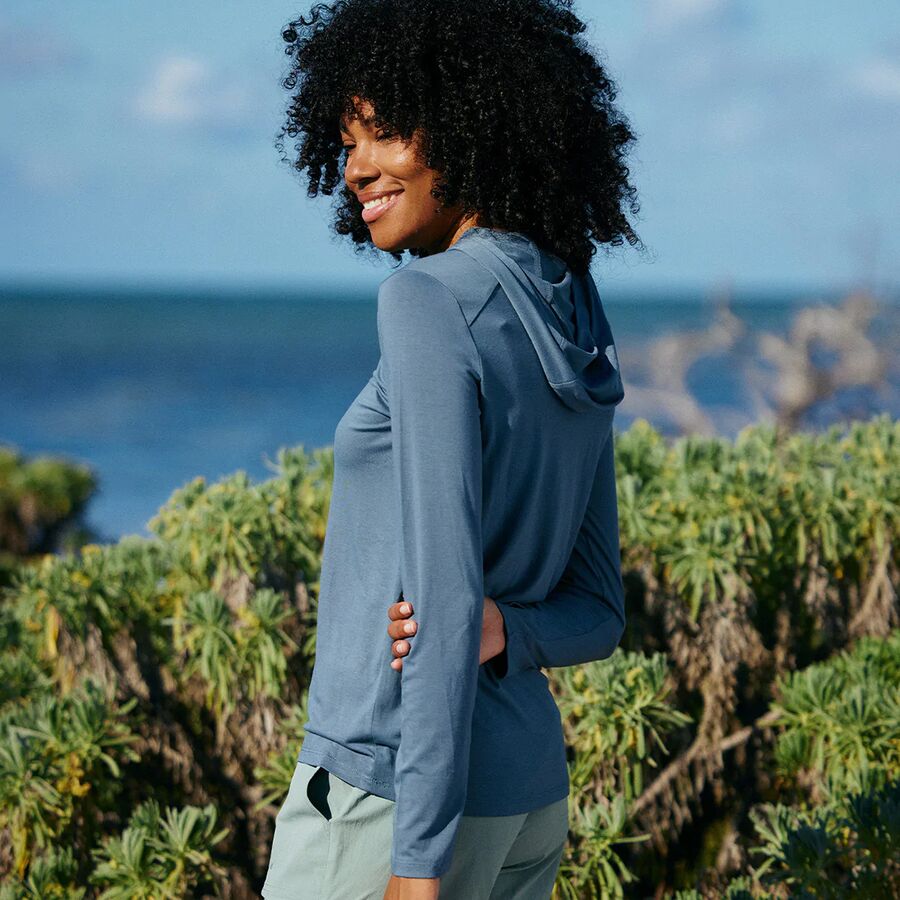 Когда мы выходим на озеро на байдарке, чтобы порыбачить на форель, мы надеваем толстовку Free Fly Shade II, чтобы оставаться в прохладе и быть защищенными от летнего солнца. Мягкая, приятная на ощупь смесь высококачественных волокон отводит влагу, быстро сохнет и предотвращает обгорание кожи под воздействием солнечных лучей, позволяя нам сосредоточиться на рыбалке.