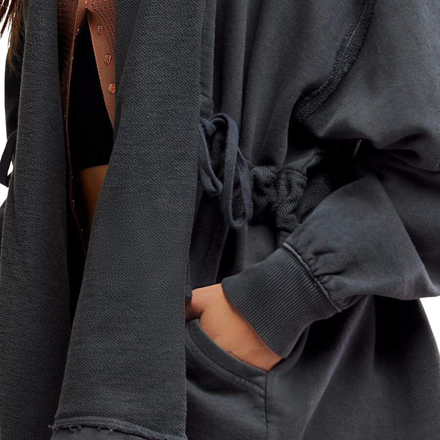 Изготовленный из мягкой хлопковой махровой ткани, он обладает всеми элементами, которые мы любим: приспущенные плечи, ребристые манжеты и регулируемый шнурок на талии, позволяющий идеально подогнать размер. Наденьте его поверх леггинсов после йоги или поверх майки для похода по магазинам - это удобная вещь, которая добавит стиля любому повседневному образу.