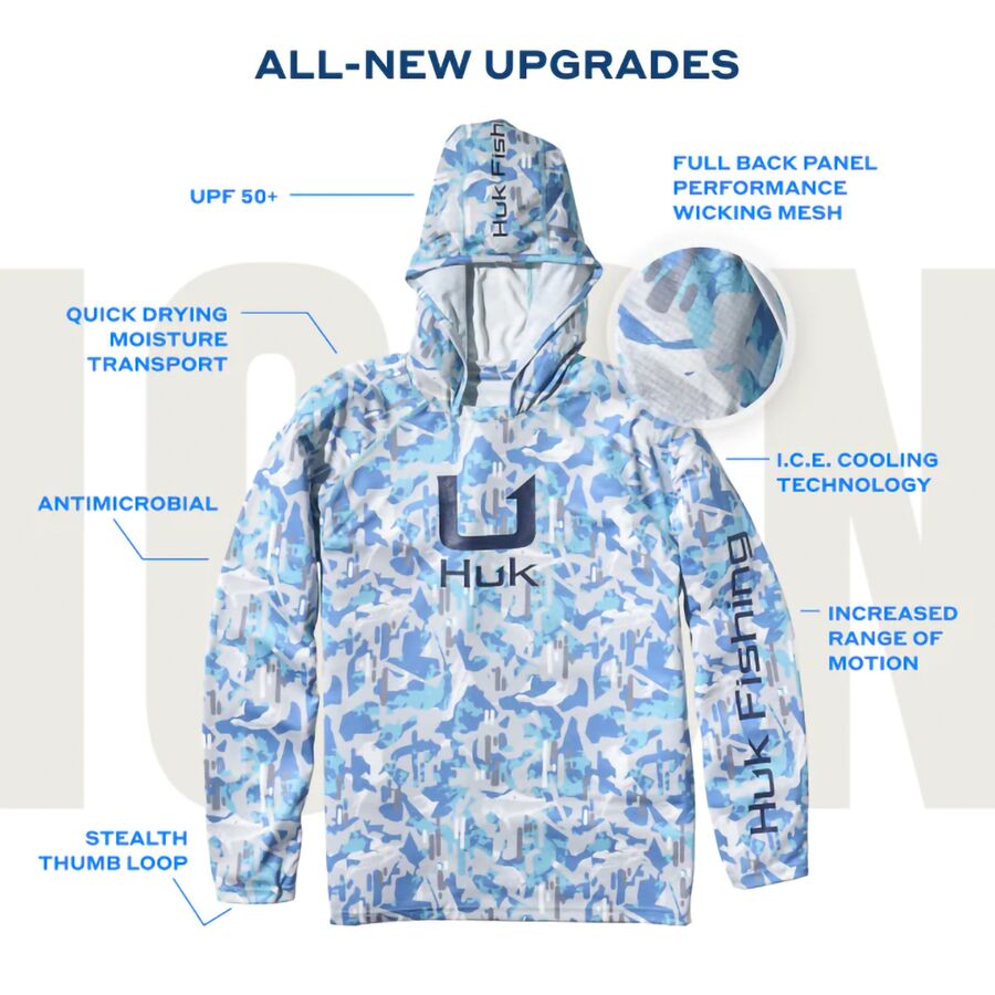 Когда мы находимся на воде или путешествуем под солнцем, худи Icon Performance становится нашей защитой и второй кожей. Компания Huk переосмыслила свою фирменную толстовку, добавив дышащую, влагоотводящую заднюю панель, чтобы нам было прохладно даже в палящую жару. Рейтинг UPF 50+ блокирует вредные лучи, а антибактериальная обработка гарантирует свежесть от утренних забросов до вечерних возвращений. Продуманный дизайн, такой как рукава реглан, обеспечивает свободу движений, поэтому каждый заброс или растяжение ощущаются без усилий.