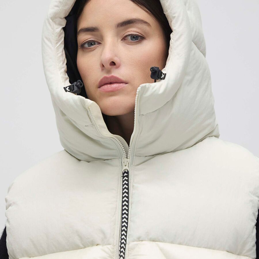 "Этот жилет - мое секретное оружие в межсезонье. Пух очень теплый, но при этом не громоздкий, и мне нравится, что я могу надевать его поверх толстовки в городе или под куртку в горах. Он отлично сидит, обеспечивая свободу движений, и его стиль подходит для любого случая."