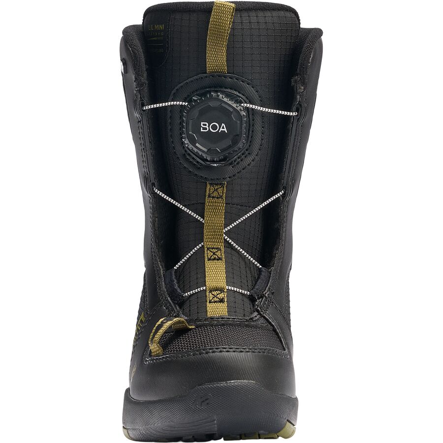 "Мой ребенок был в восторге от возможности самостоятельно застегнуть свою систему BOA Fit System - это заставило его почувствовать себя настоящим сноубордистом. Модель Lil Mini мягкая, теплая и очень легко надевается и снимается." Кроме того, стелька Grows-A-Long означает, что ботинки прослужат не один сезон. Сноубордические ботинки K2 Lil Mini созданы для того, чтобы первые дни катания были легкими и веселыми. Независимо от того, только ли они начинают кататься или осваиваются на зеленых трассах, эти универсальные ботинки обеспечивают тепло, комфорт и беспроблемную эксплуатацию, разработанные специально для юных райдеров. Система BOA Fit System, разработанная специально для детей, позволяет легко затягивать ботинки даже в перчатках, чтобы они могли самостоятельно подобрать размер и уверенно подняться на подъемник. Внутри конструкция без подкладки обеспечивает простоту и уют, а вставки Grows-A-Long регулируют посадку по мере роста стопы, продлевая срок службы ботинок более чем на один сезон. Мягкая гибкость и подошва Bright Futures обеспечивают легкое сцепление и поддержку в течение всего дня для быстро обучающихся райдеров, готовых влюбиться в горы.