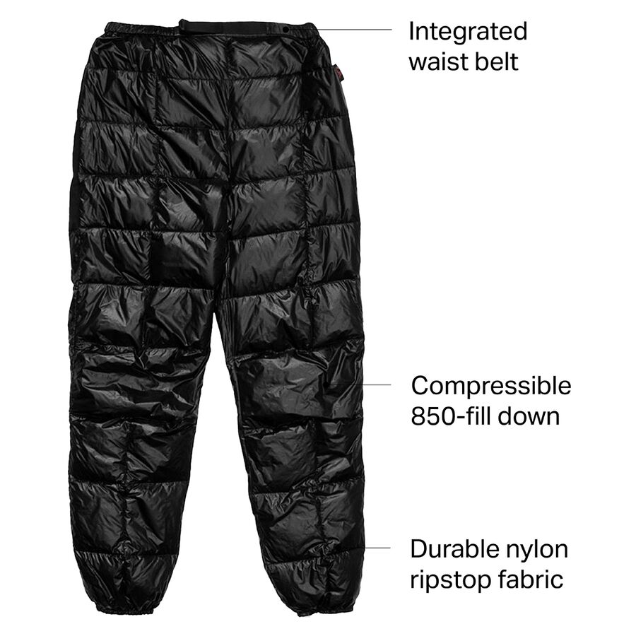 Утепленные гусиным пухом плотностью 850+, брюки Flash Pants эффективно удерживают тепло, при этом сжимаясь до компактных размеров, чтобы их можно было убрать до тех пор, пока они не понадобятся. Ветрозащитная оболочка из нейлона рипстоп защищает от сквозняков, а продуманные детали, такие как усиленная область сиденья, регулируемый поясной ремень и эластичные застежки на лодыжках, делают их практичными для всего: от растапливания снега в лагере до обустройства спального места в холодную погоду.
