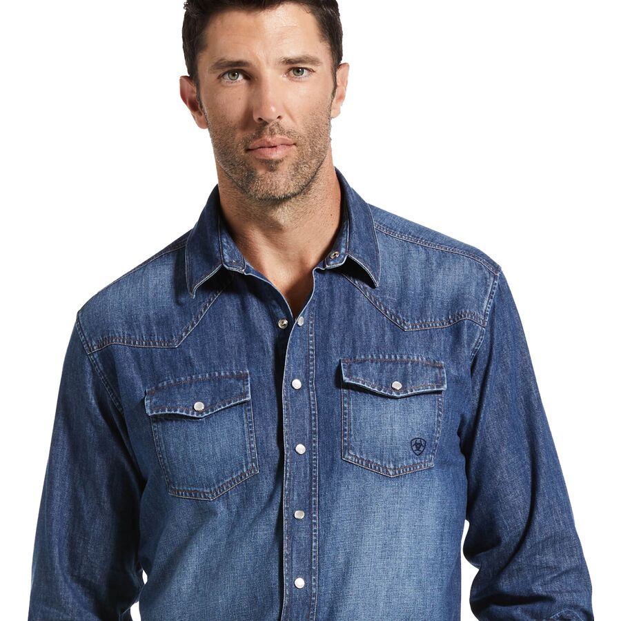 Мы любим хорошие джинсовые рубашки, и рубашка Ariat Denim Retro Fit сочетает классический стиль с современным комфортом. Изготовленная из легкого денима плотностью 6,75 унций, эта рубашка из 100% хлопка обеспечивает идеальный баланс прочности и воздухопроницаемости. Приталенный крой в области груди и талии придает ей элегантный вид, а конструкция швов Ariat Greater Arm Mobility гарантирует неограниченную свободу движений.