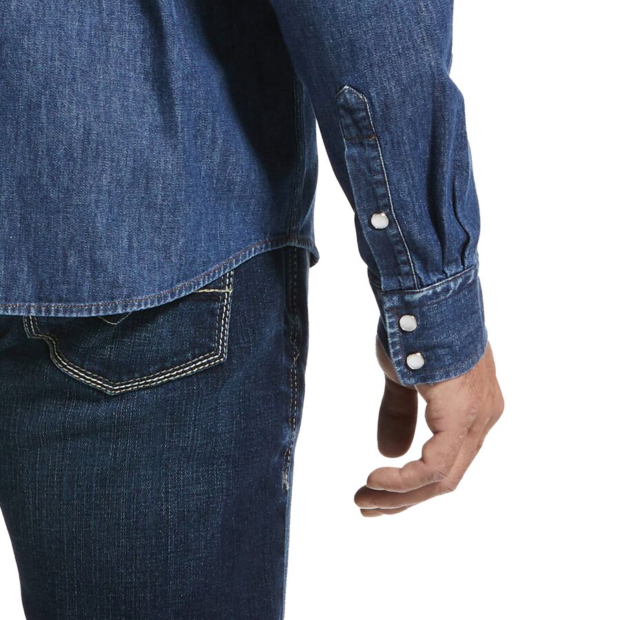 Рубашка Ariat Denim Retro Fit - мой любимый вариант для повседневной носки и вечерних выходов. Приталенный крой придает ей современный вид, а кокетка в стиле вестерн и свобода движений рук обеспечивают комфорт в любых условиях, от работы на улице до ужина с друзьями.