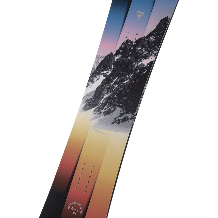 Его гибкий профиль и смещенная назад стойка позволяют ему легко скользить по пухляку, а кембер под креплениями обеспечивает быструю реакцию и надежный контроль на твердом снегу. Будь то покорение подготовленных трасс курорта, преодоление технически сложных склонов или поиск укромных мест вдали от цивилизации, After Hours справится со всем этим уверенно и стильно.