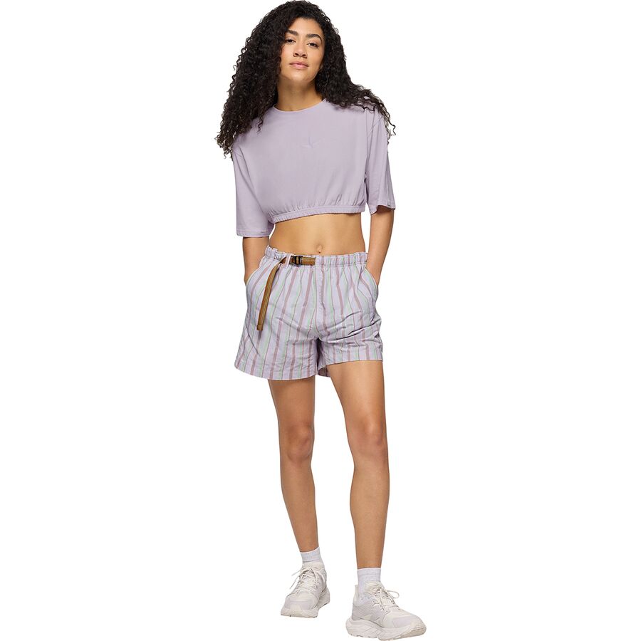 Отсылка к 90-м с современным, экологичным подходом - футболка Ninety Three Cinch привносит винтажный стиль в наш повседневный гардероб. prAna создала этот укороченный топ свободного кроя из 100% органического хлопка, обеспечивающего мягкость и воздухопроницаемость, идеально подходящие для теплых дней и непринужденных приключений. Эластичный низ слегка подтягивает фигуру, создавая привлекательный силуэт и сохраняя при этом непринужденный, винтажный стиль. Независимо от того, надеваем ли мы ее поверх любимой спортивной одежды после тренировки на скалодроме или сочетаем с джинсами с высокой талией для повседневной прогулки, эта футболка обеспечивает непринужденный стиль с корнями в экологичности. Вдохновленная прошлым, но созданная для сегодняшнего дня, она станет незаменимой вещью как для любителей винтажа, так и для искателей приключений.