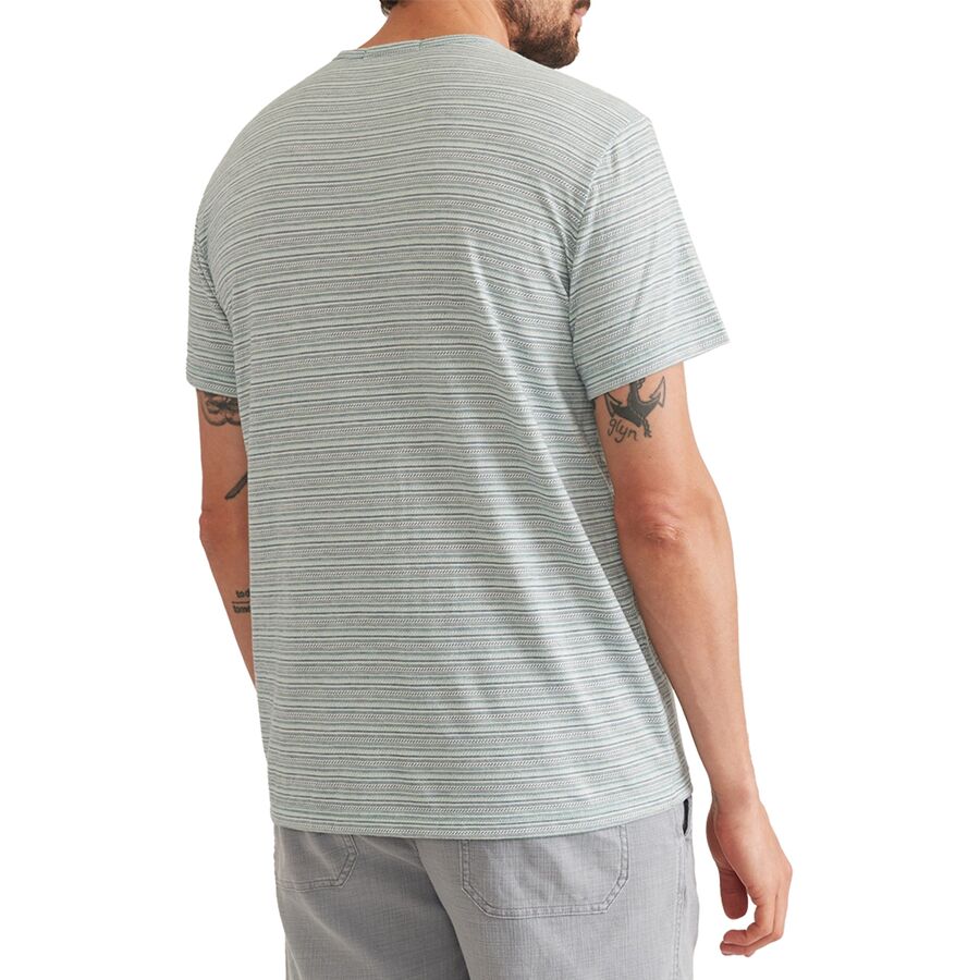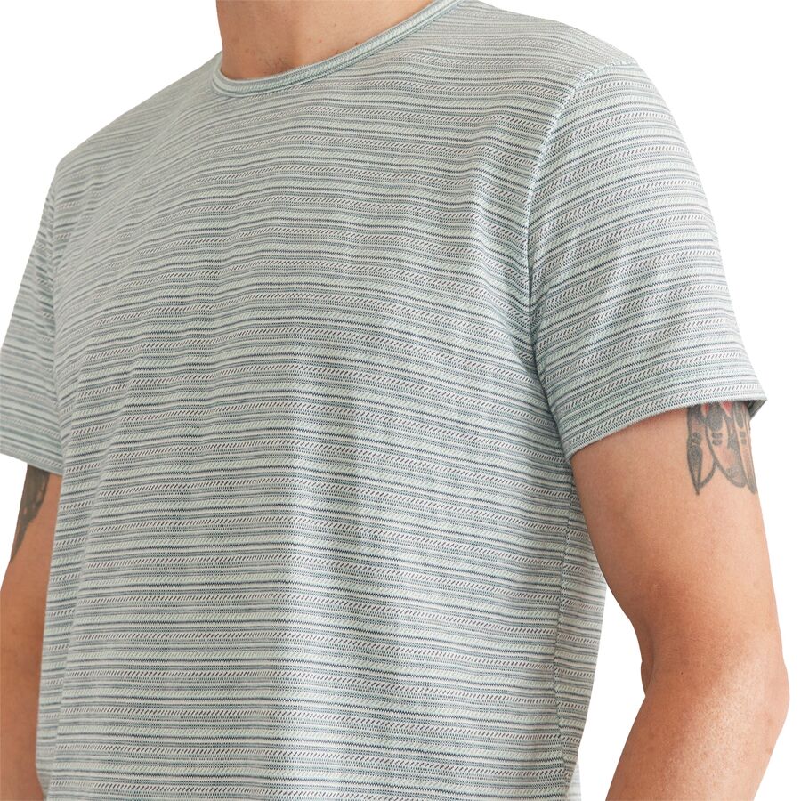 Ультрамягкая и классически стильная футболка Marine Layer Blister Stitch All Over Stripe подойдет для всего: от закусок на террасах на крыше до игры в бочче на заднем дворе. Мягкий органический хлопок и переработанный полиэстер составляют основу ткани этой футболки, обеспечивая посадку и комфорт, которые никогда не выйдут из моды.