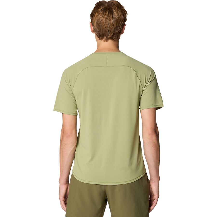"Эта футболка - мой незаменимый помощник для высокоинтенсивных тренировок и длительных походов. Легкий переработанный полиэстер быстро отводит пот, а технология защиты от запаха сохраняет свежесть даже в многодневных поездках. Мне нравятся рукава реглан, обеспечивающие свободу движений, а удлиненный нижний край добавляет необходимую дополнительную защиту. Бегаю ли я по лесным тропам или занимаюсь скалолазанием, эта футболка движется вместе со мной и сохраняет меня сухим."