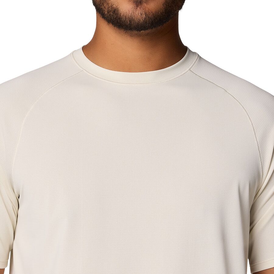 "Эта футболка - мой незаменимый помощник для высокоинтенсивных тренировок и длительных походов. Легкий переработанный полиэстер быстро отводит пот, а технология защиты от запаха сохраняет свежесть даже в многодневных поездках. Мне нравятся рукава реглан, обеспечивающие свободу движений, а удлиненный нижний край добавляет необходимую дополнительную защиту. Бегаю ли я по лесным тропам или занимаюсь скалолазанием, эта футболка движется вместе со мной и сохраняет меня сухим."