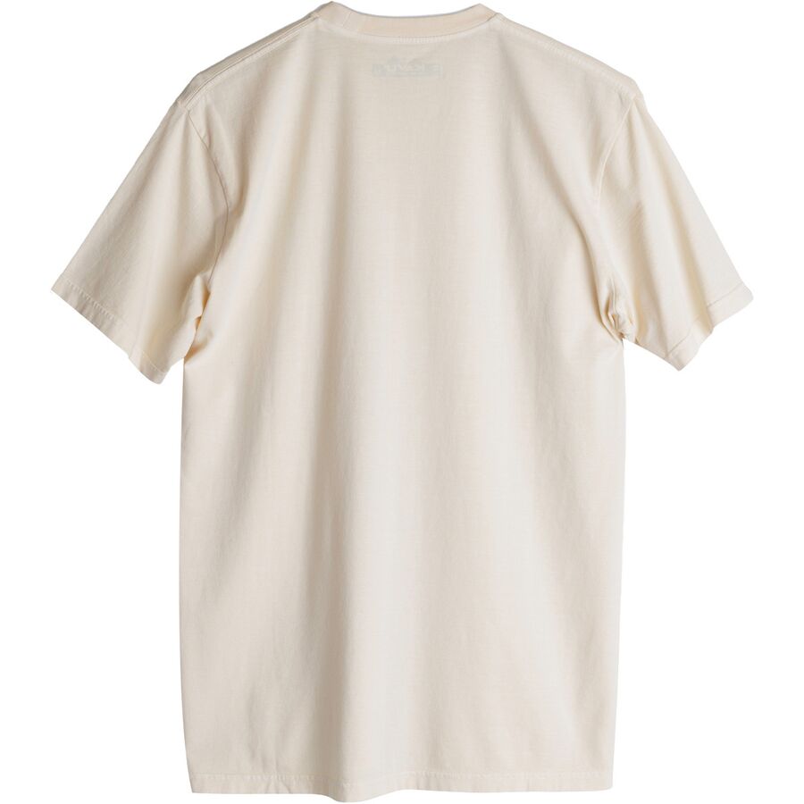 "Эта футболка с самого начала имеет идеальное ощущение поношенности. Плотный хлопковый трикотаж мягкий, но прочный, а окрашивание готового изделия придает ей едва заметный, поношенный вид. Это удобная вещь для повседневной носки, будь то поход или просто прогулка по городу."