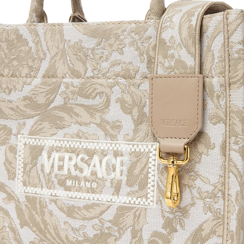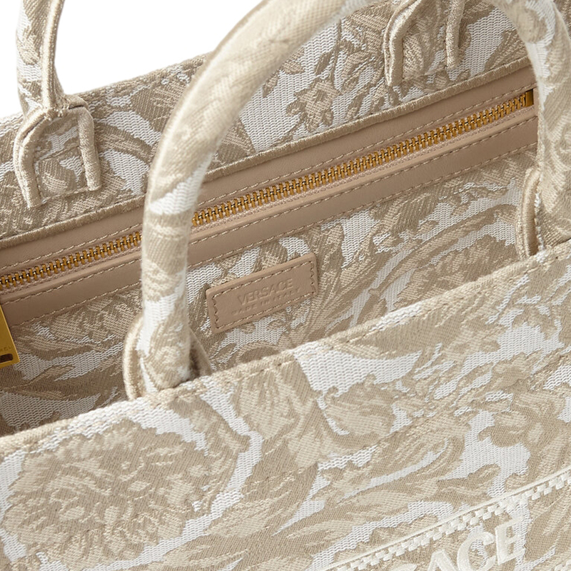 Barocco Canvas Tote Bag, Shopping Bag, Handbag Small Women's Beige VERSACE, basic set (bag+dust bag)