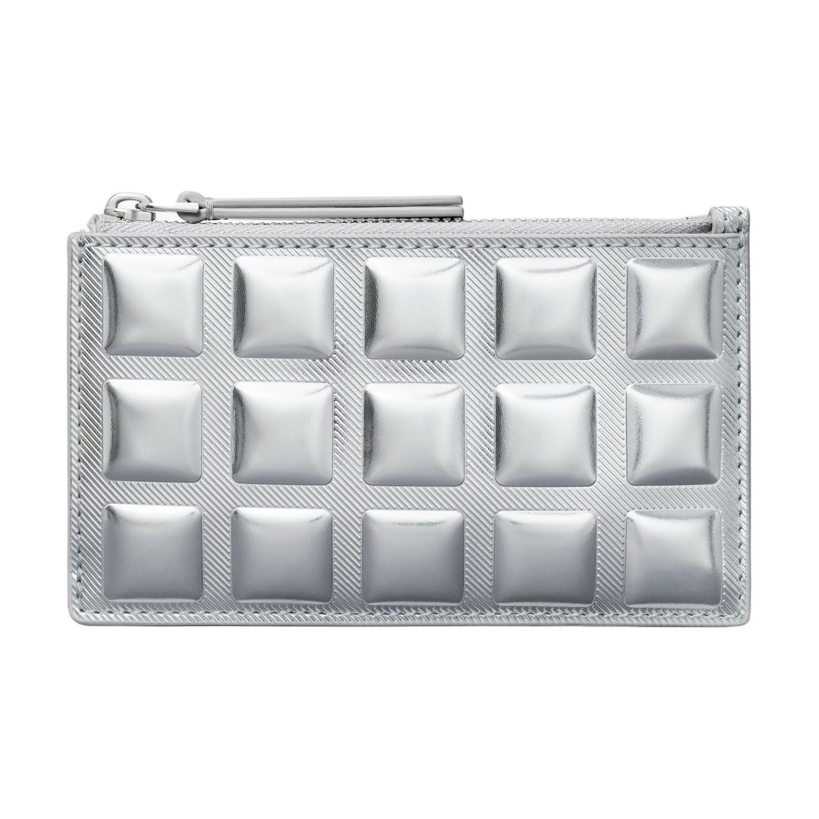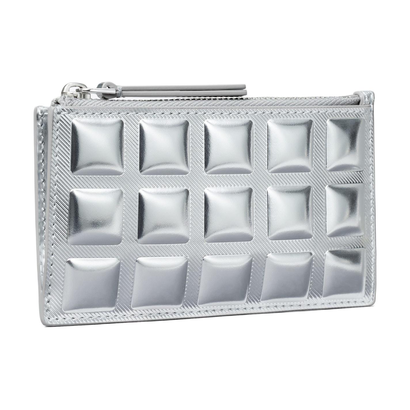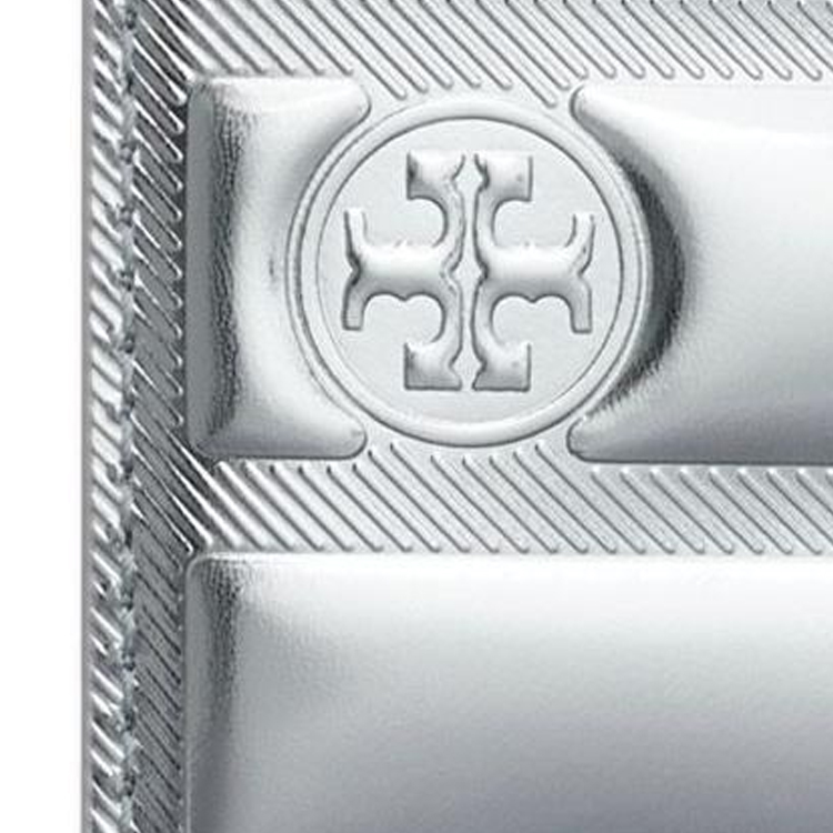 TORY BURCH Fleming Mirror Finish Metal Leather Card Holder Women's Silver