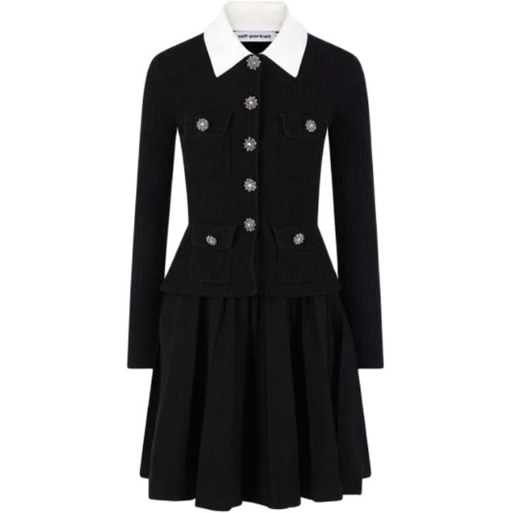 Мини-платье с воротником и декором Self-portrait, черный 64 109₽