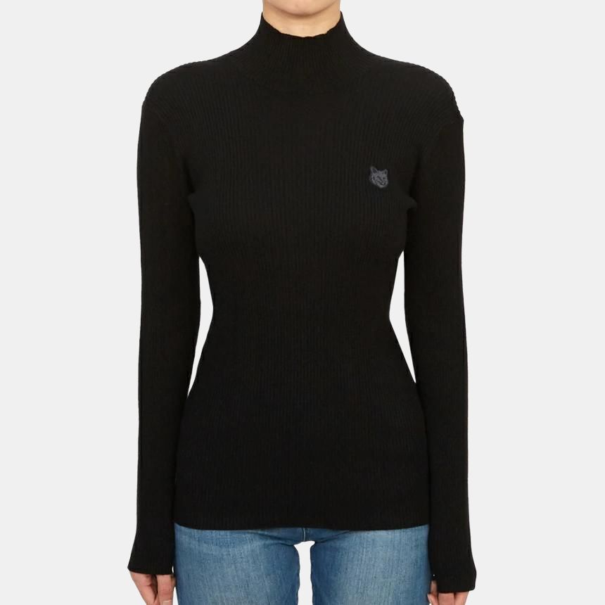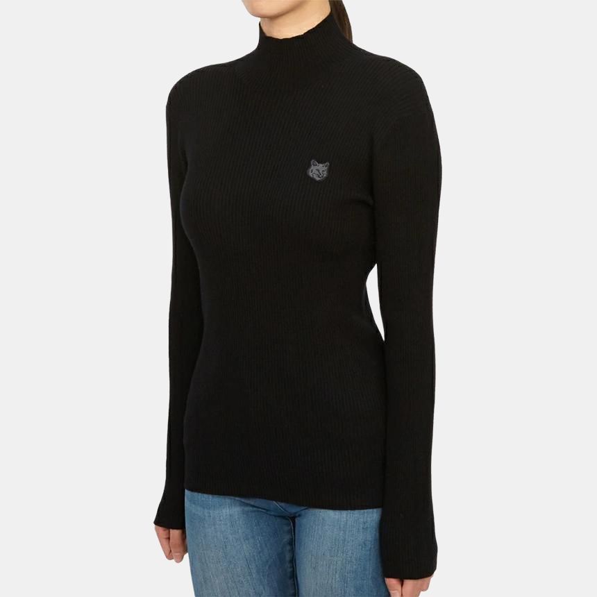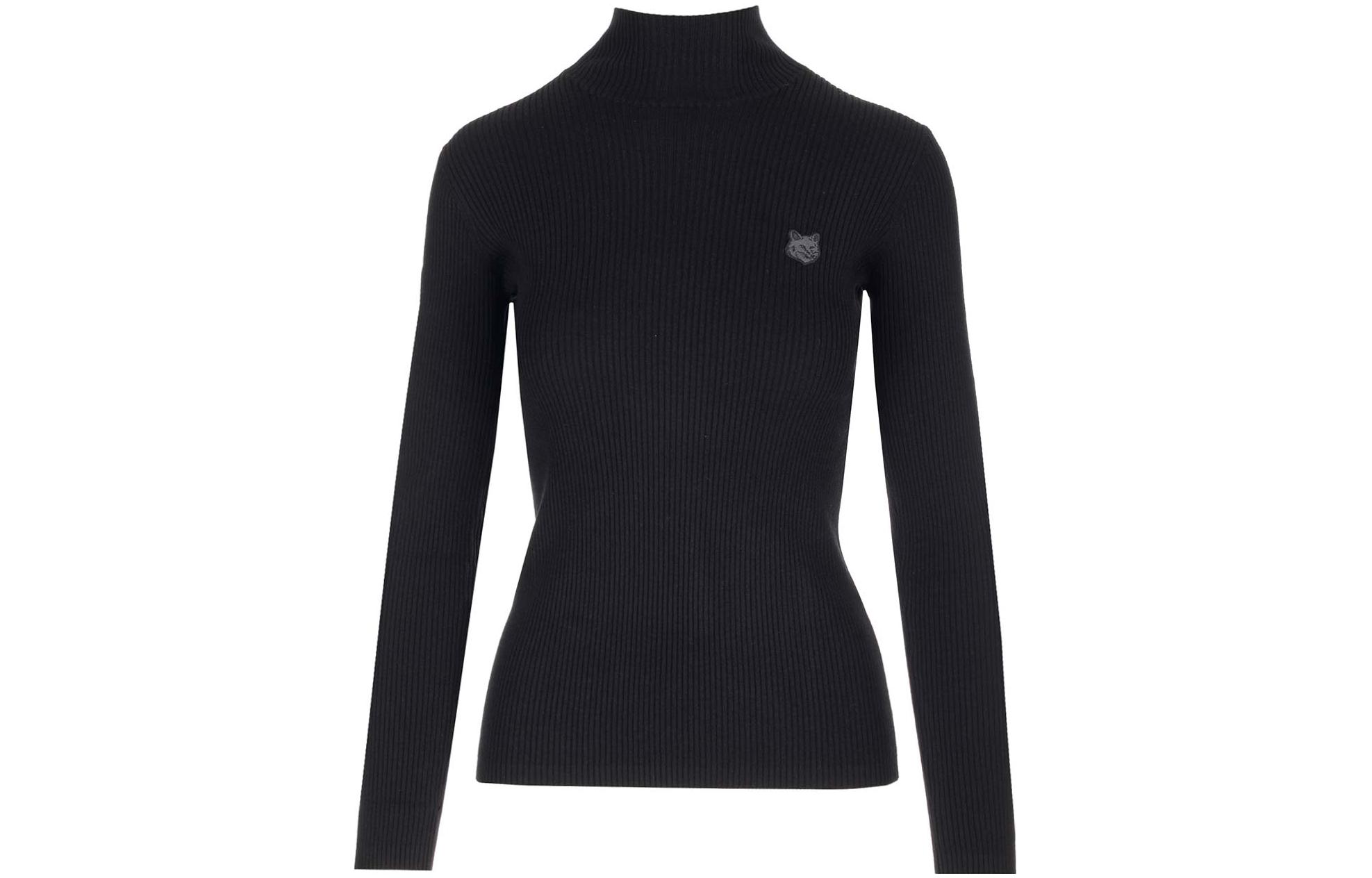 Свитер с воротником-стойкой и вышитым логотипом Maison Kitsune, черный