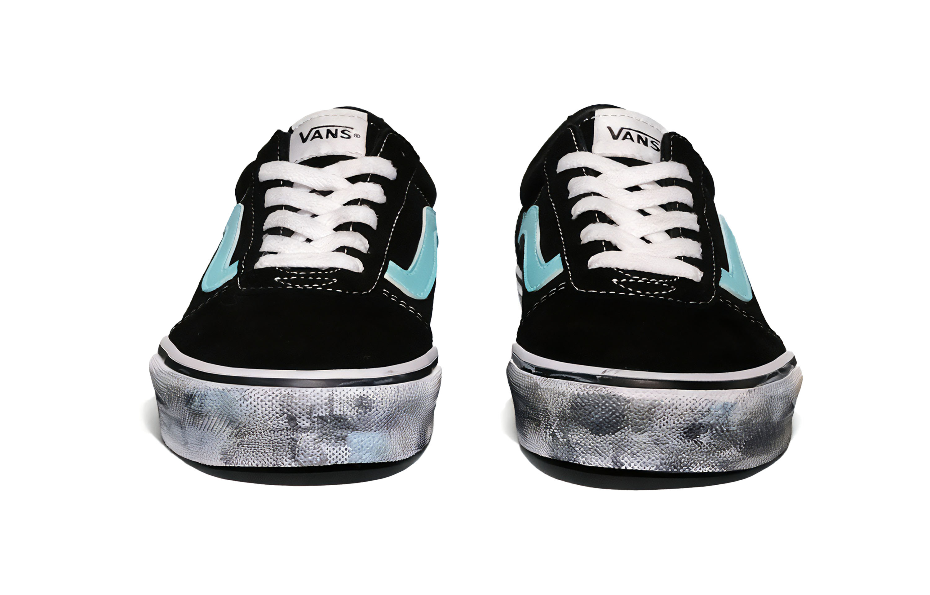 Эти кастомные кроссовки созданы на основе серии Vans Faulkner. Основные цвета - черный и красный, выполненные в стиле граффити.