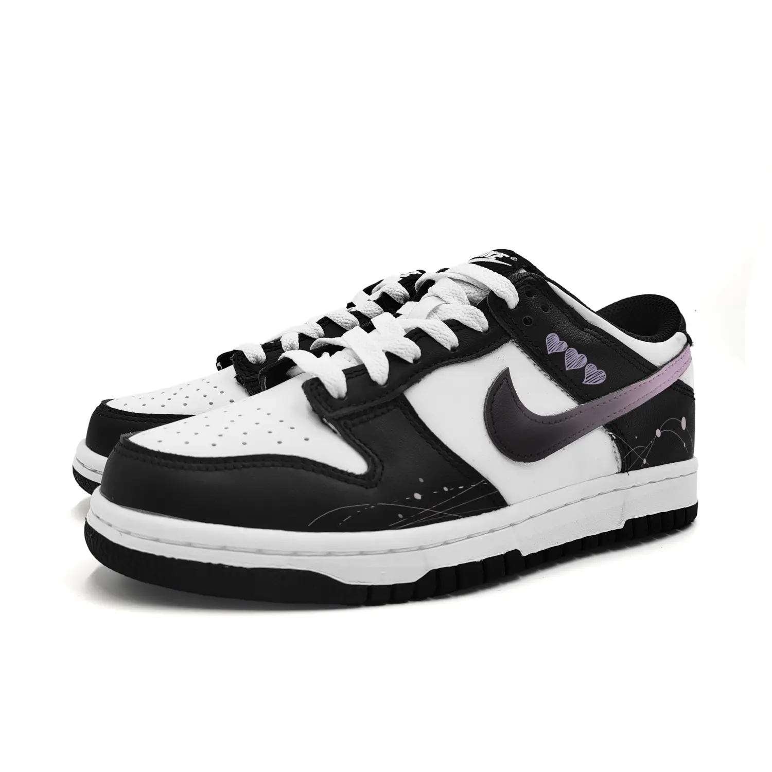 Nike Dunk Violet Leather Cushioning Low top Skateboard Shoes Women's Black White