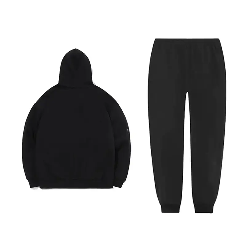 Комплект: Черная толстовка с капюшоном на флисовой подкладке + Черные спортивные штаны с манжетами на флисовой подкладке