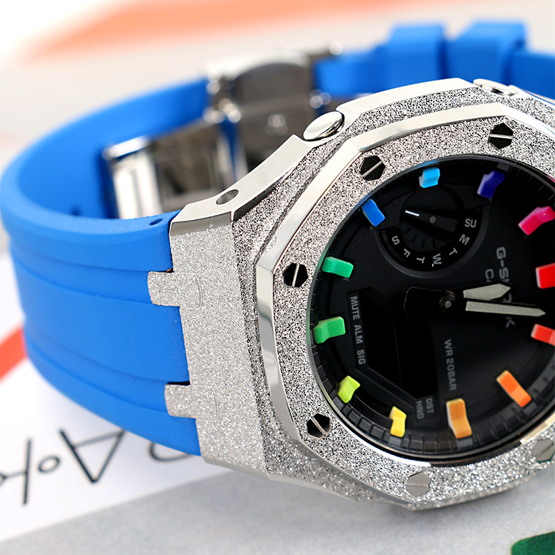 Цвет корпуса: Черный, матовый, золотистый Корпус часов, красный ремешок