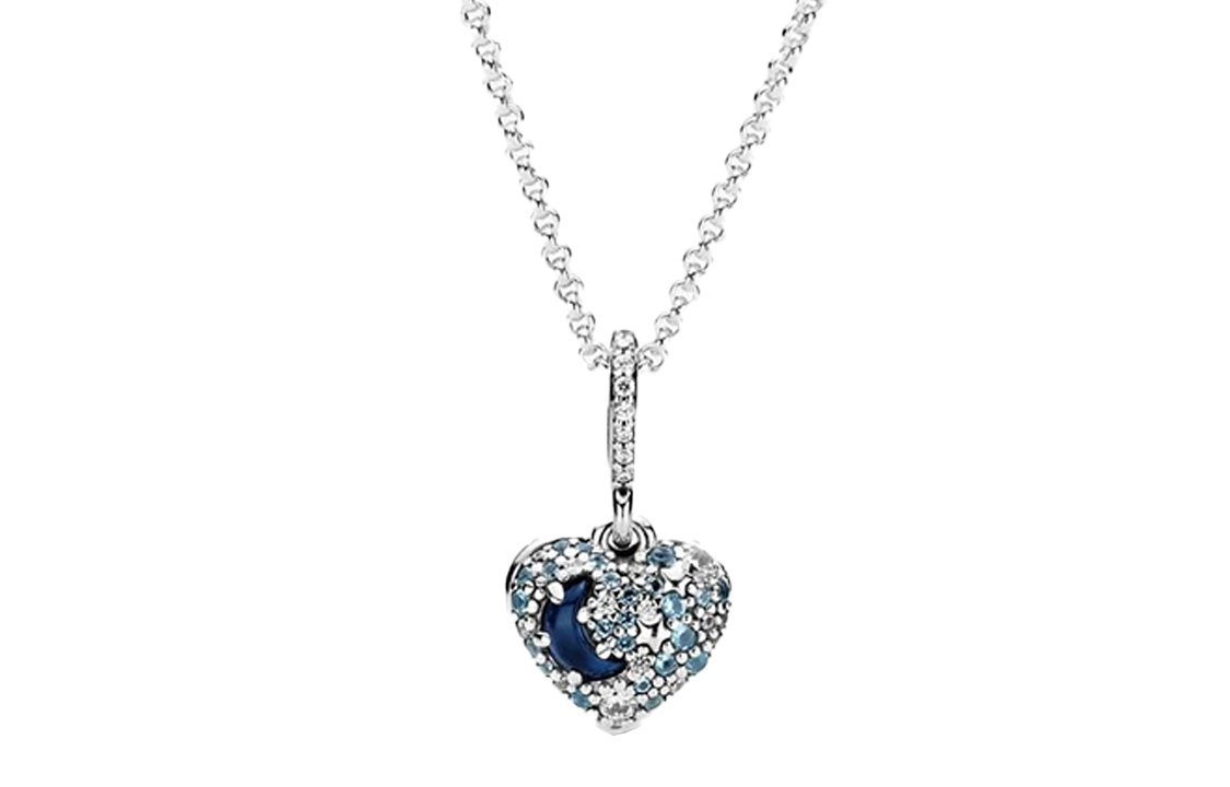 Отдайте дань уважения чарующему ночному небу с помощью колье в форме сердца, украшенного сияющей голубой луной и звездами. Кулон в форме сердца, изготовленный вручную из серебра 925 пробы, декорирован голубыми драгоценными камнями, серебряными звездами и камнем в форме полумесяца - это новинка для украшений Pandora. Дизайн включает в себя выдолбленную луну и звезды, а на обратной стороне выгравированы слова «Люблю тебя до луны и обратно». Длина колье регулируется, а на конце имеется рельефная пластинка с изображением луны и короны Pandora. Выразите свою любовь к особенному человеку с помощью этого кулона в звездной тематике.