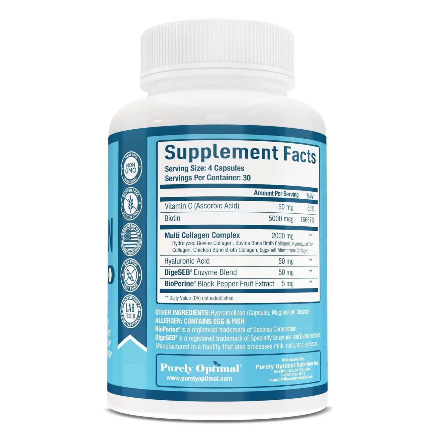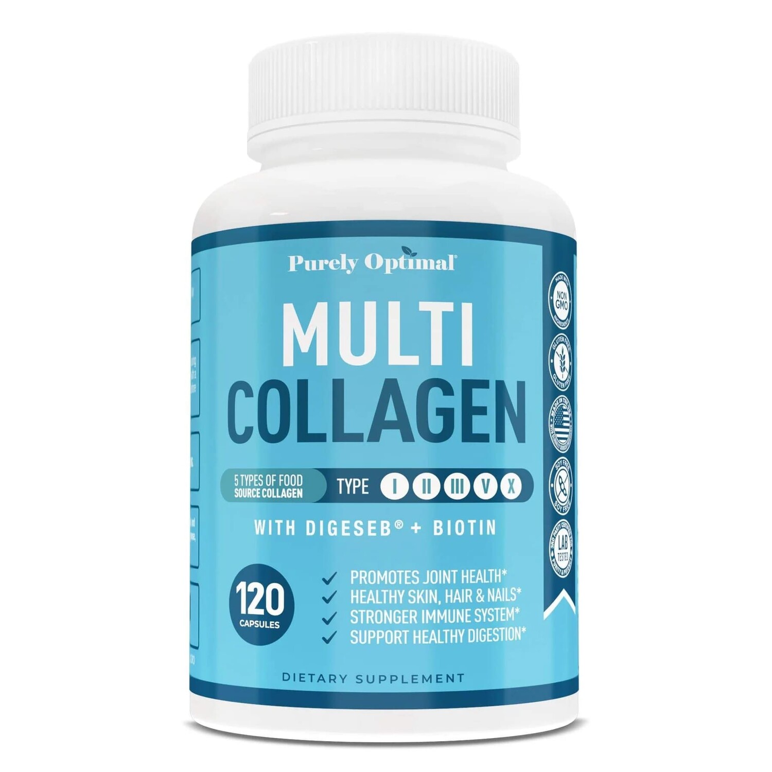 Биологически активная добавка с коллагеном типа I, II, III, V, X, биотином, гиалуроновой кислотой, биоперином и ферментами для поддержания здоровья волос, кожи, ногтей, суставов и пищеварения.