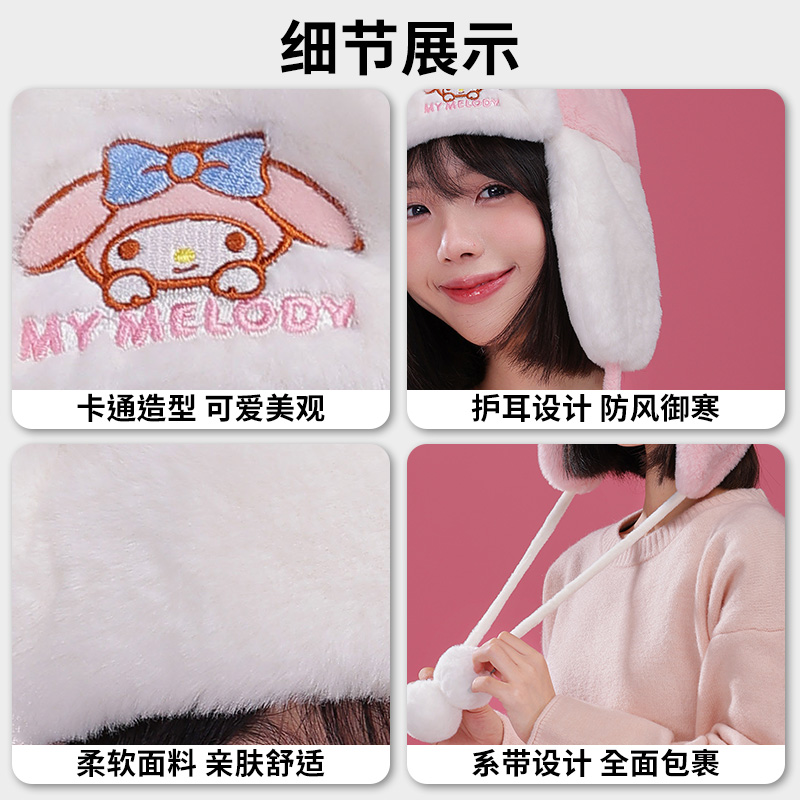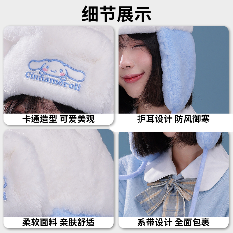 My Melody Cinnamoroll Polyester Trapper Hats Women's Sanrio, синий cinnamoroll 1 386₽