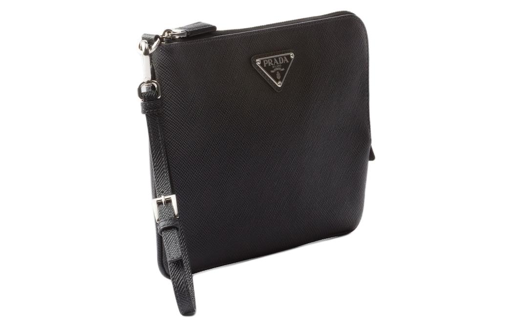 PRADA Кожаный клатч Saffiano маленький мужской черный