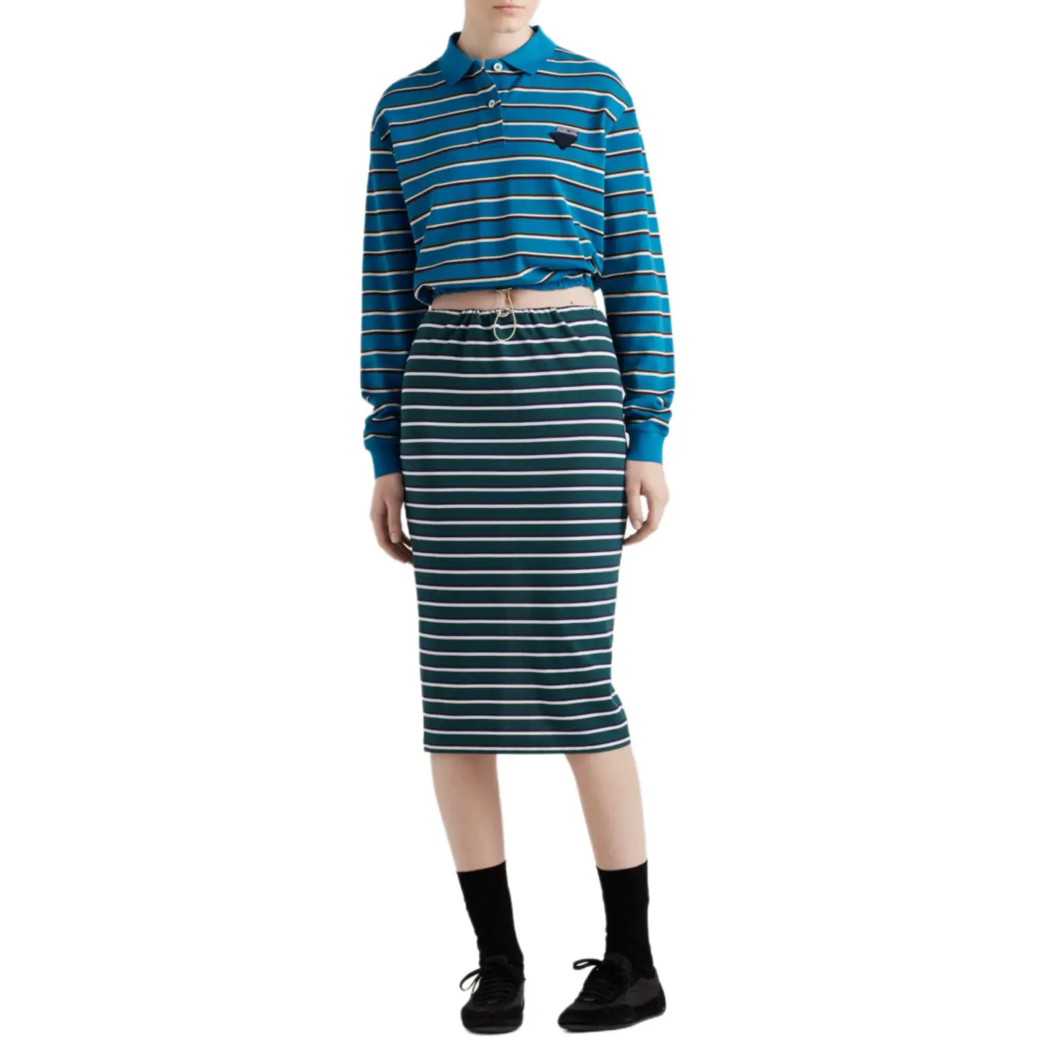 Поло с длинным рукавом в полоску PRADA, cyan 88 140₽