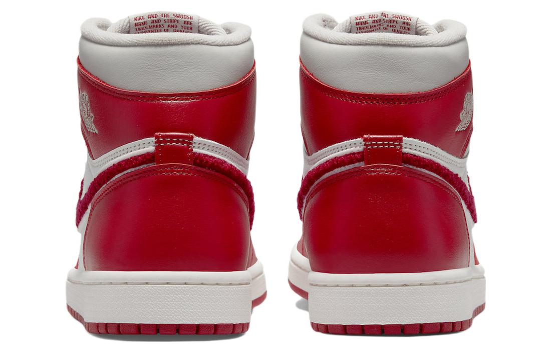 Эти Air Jordan 1, выполненные в цветовой гамме светло-железнорудного, университетского красного и парусного оттенков, имеют белую кожаную основу с красными накладками и элементами цвета железной руды на воротнике и язычке. Среди других деталей - вельветовый язычок и логотип Swoosh из синели сбоку. Завершает дизайн подошва цвета парусины на красной резиновой подметке.