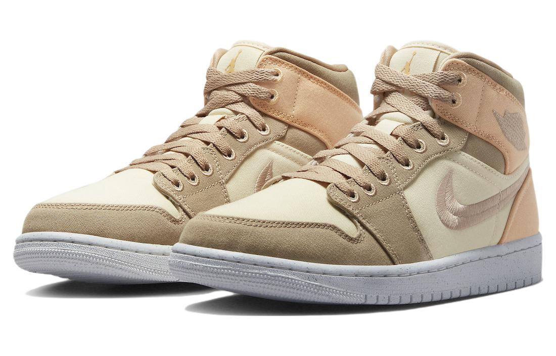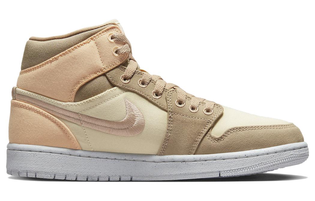 Эти Air Jordan 1 Mid выполнены полностью из парусины и украшены вышитыми логотипами Swoosh по бокам. Завершает дизайн белая резиновая подошва с вкраплениями.