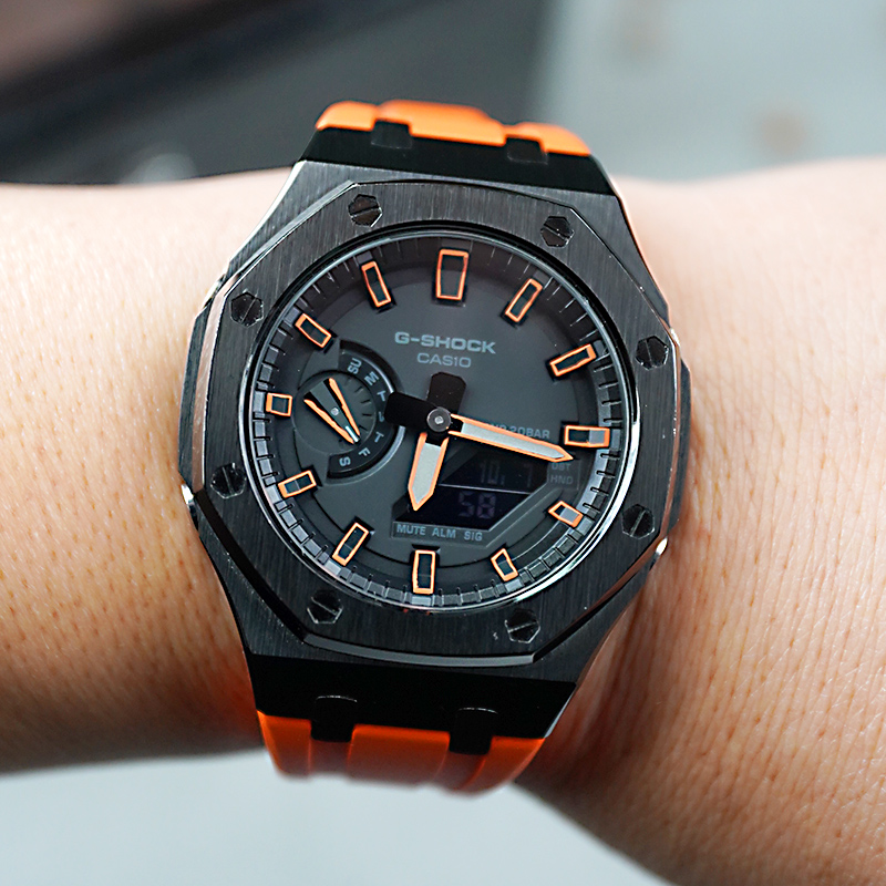 Цвет корпуса: Стальной корпус четвертого поколения, черный, с небольшим отверстием, длинная текстурированная поверхность, оранжевый ремешок