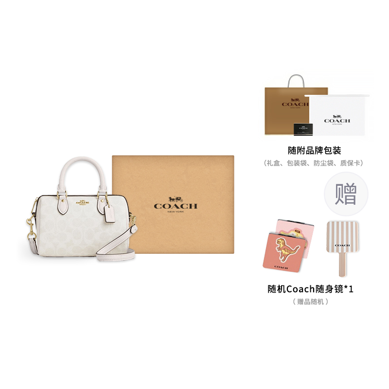 COACH Rowan Coated Canvas One Shoulder Handbags Small Size Women's Gold & White 20 007₽