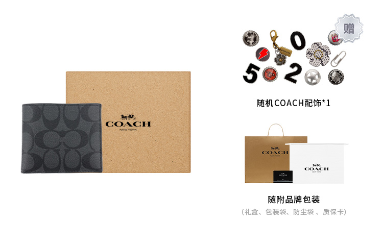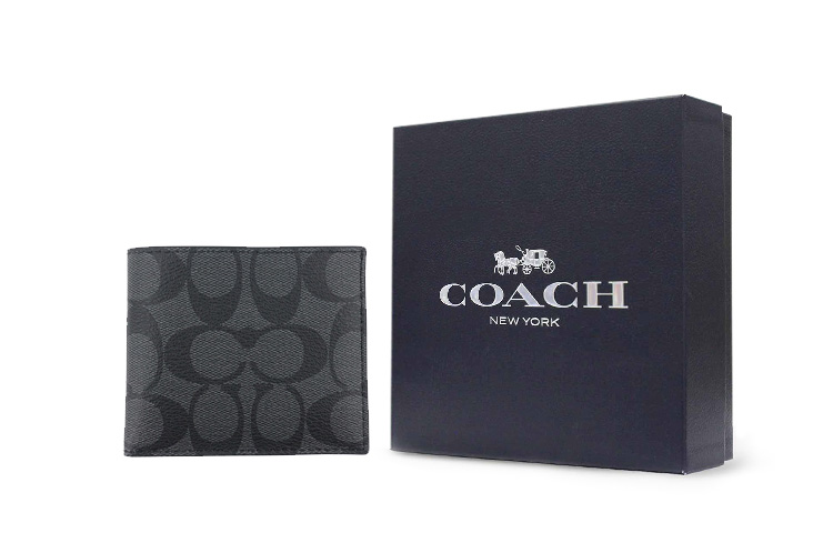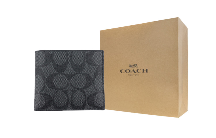 COACH Canvas With PVC Wallet Mini мужской черно-серый