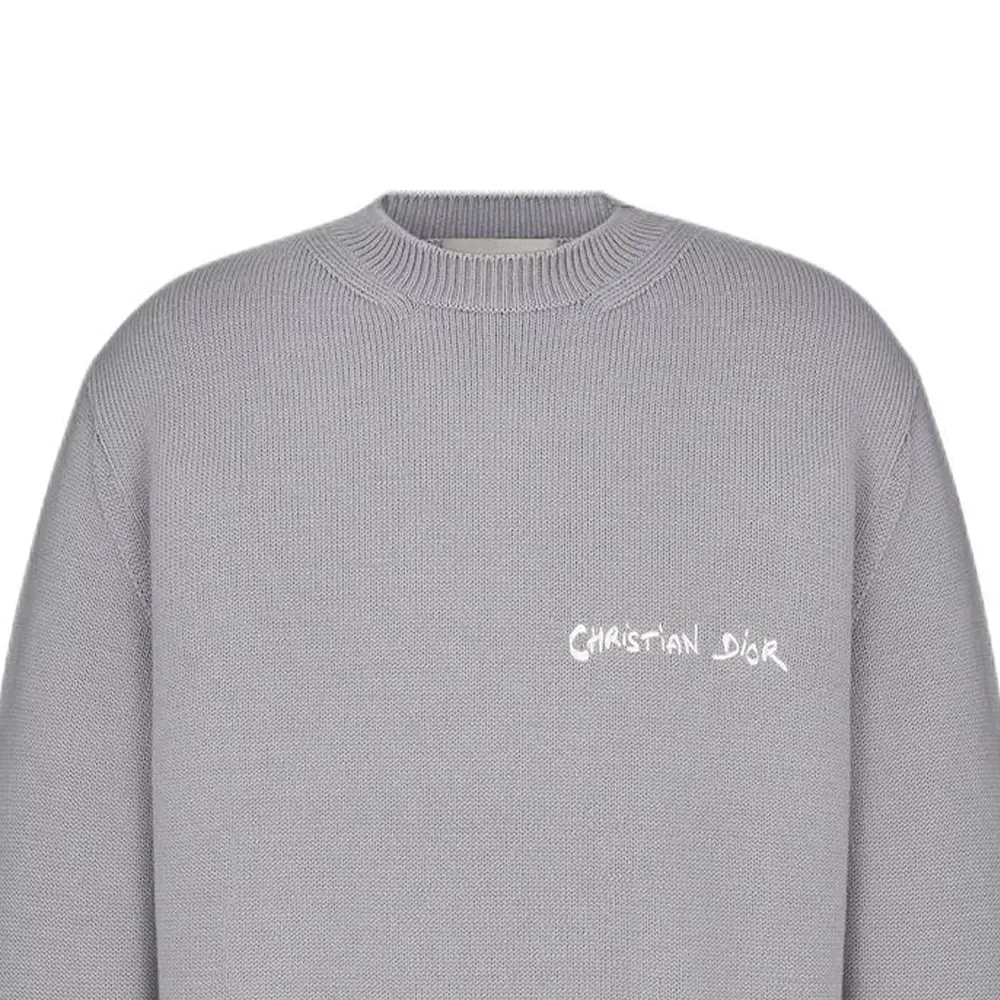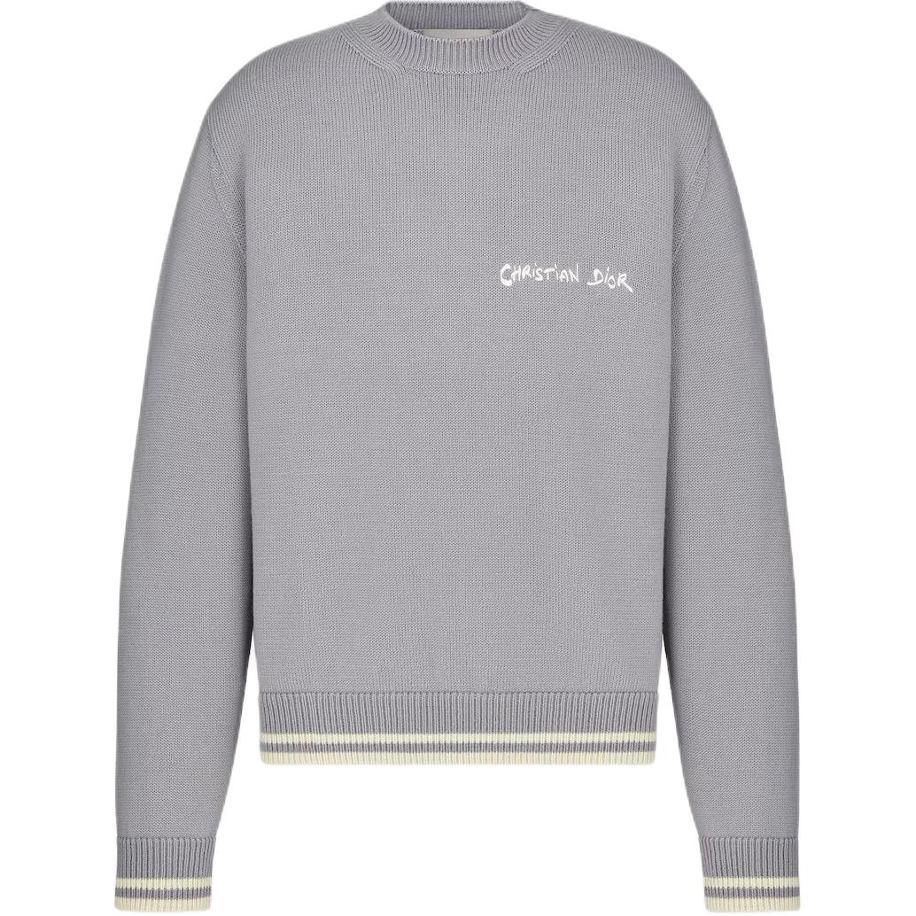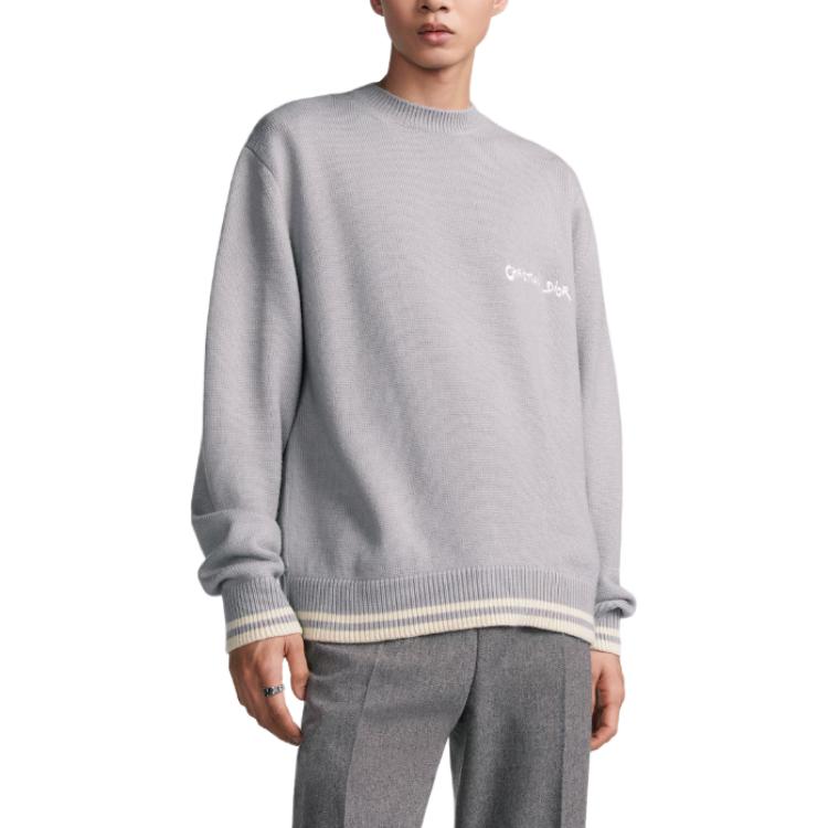 DIOR Свитер мужской серый с круглой горловиной Moderate