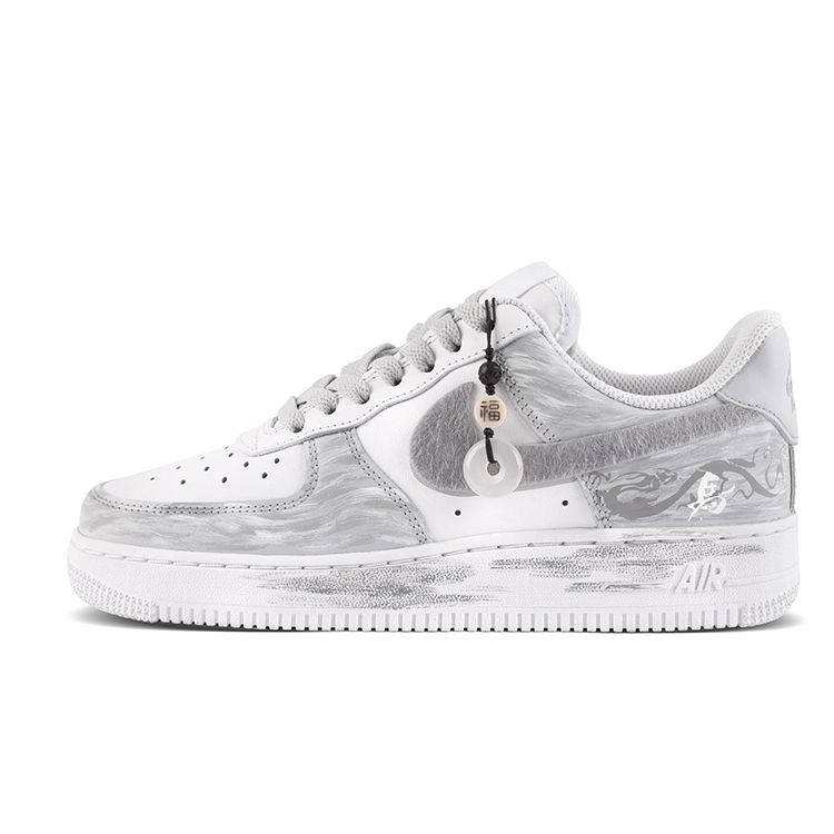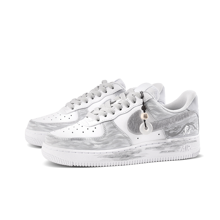 Эти кастомные кроссовки созданы на основе оригинальной модели Nike Air Force 1. Общий дизайн этих Nike Air Force 1 вдохновлен китайским стилем. Эта версия отличается перекрашенным дизайном, основанным на оригинальной модели, с серым и белым в качестве основных цветов, а общий дизайн вращается вокруг элементов, связанных с Годом Лошади. Персонализированные граффити и подвески в виде нефритовых колец добавляют очарования, подчеркивая уникальный китайский колорит обуви. Кроссовки простые, но изысканные, универсальные и стильные, идеально подходят для законодателей моды, которые любят новый китайский стиль и хотят, чтобы их образы выделялись.
