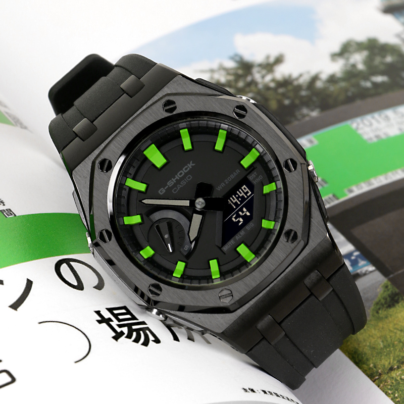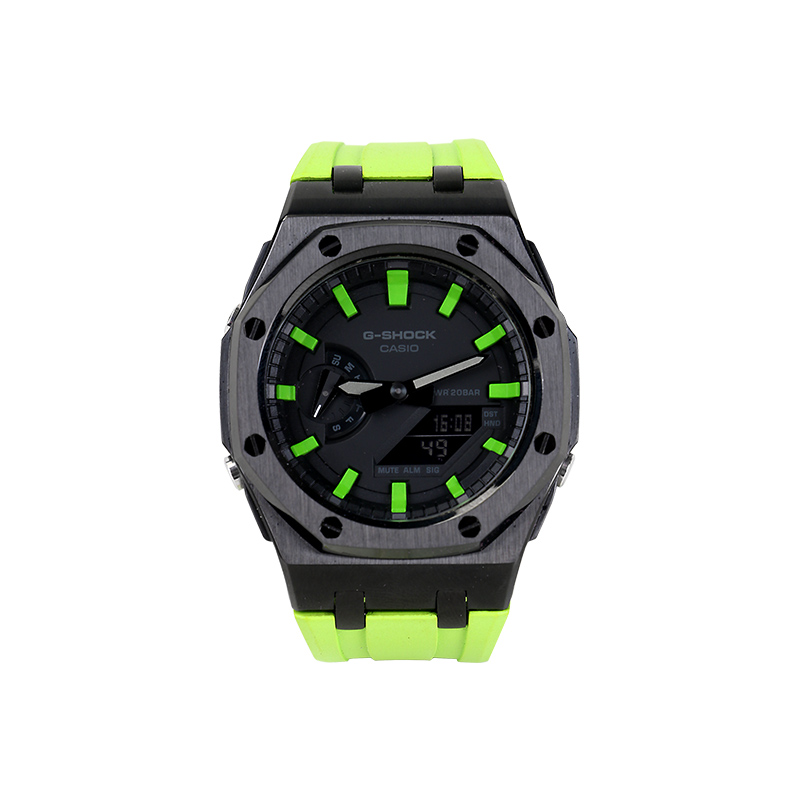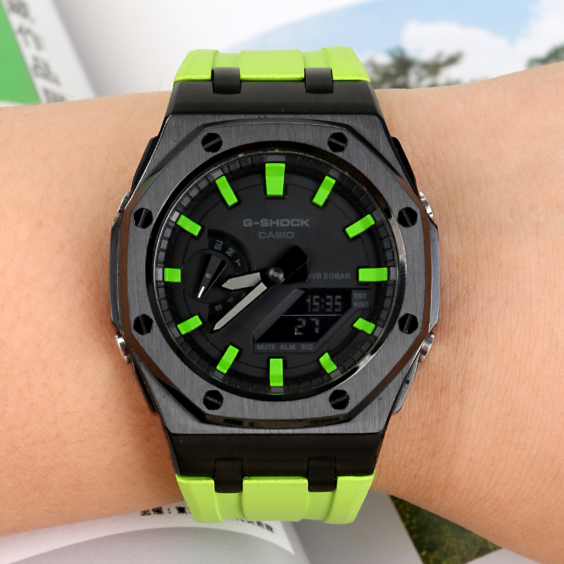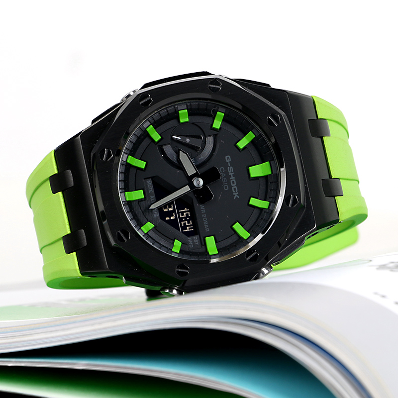 Цвет корпуса: Зеленый, черный, широкий, полуполосатый, зеленый ремешок