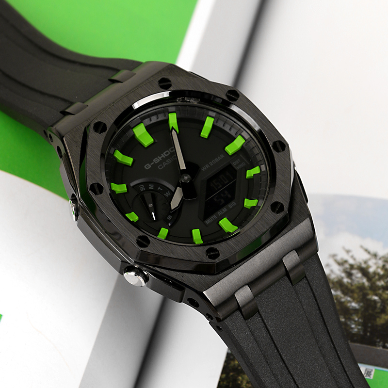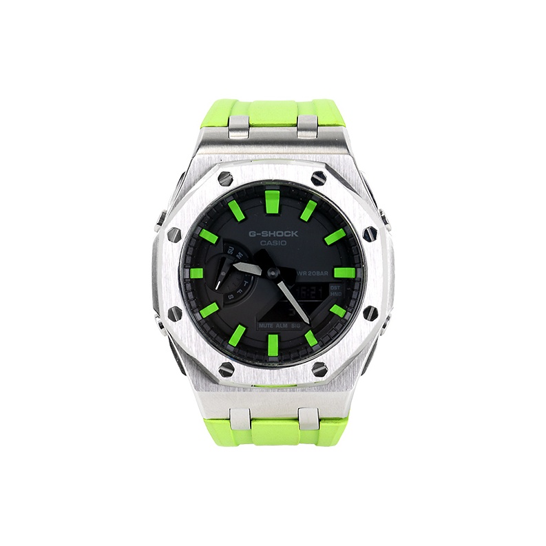 Цвет корпуса: Зеленый, серебристый, широкий, полутекстурированный, зеленый ремешок