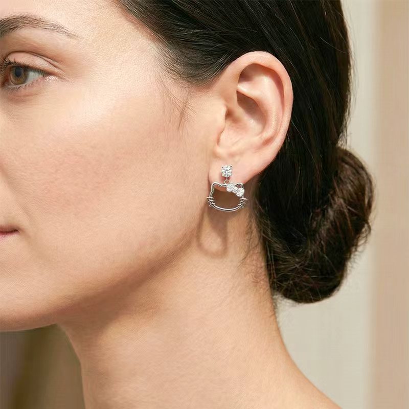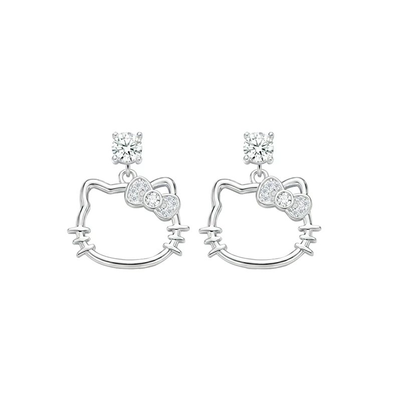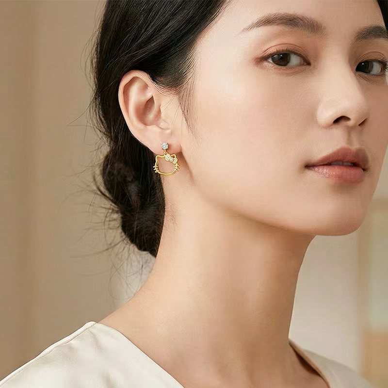 Hello Kitty Zircon Stud Earrings Women's Sanrio, hello kitty stud earrings-золотой 1 505₽
